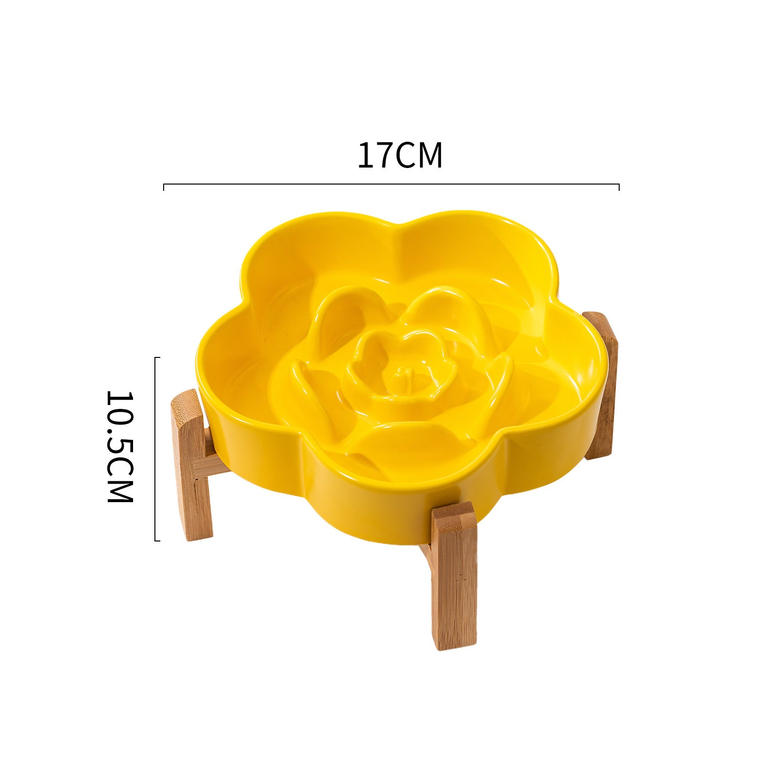 Ceramic Slow Feeder Cat Bowl with Wooden Rack – Anti-Vomit Design